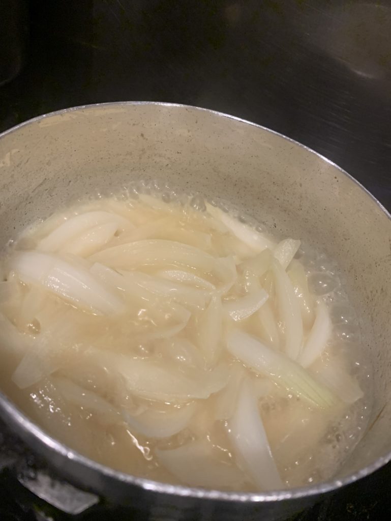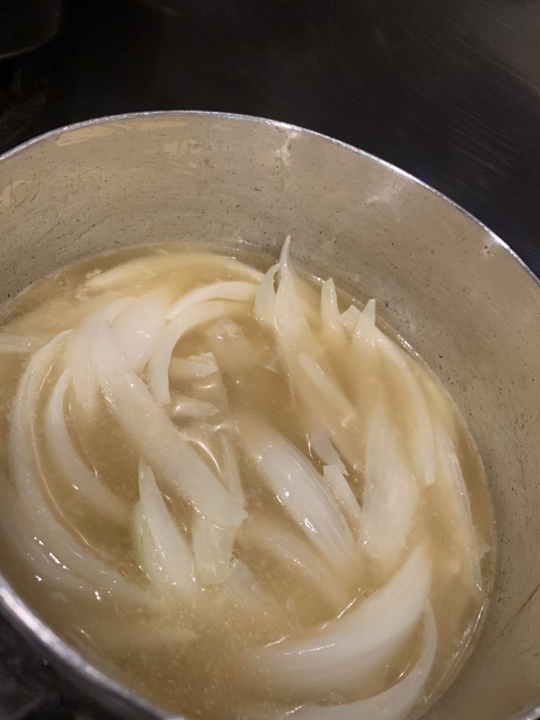玉葱が透明になるまで炒めることで、甘みが引き出され、スープのベースがより深くなります。