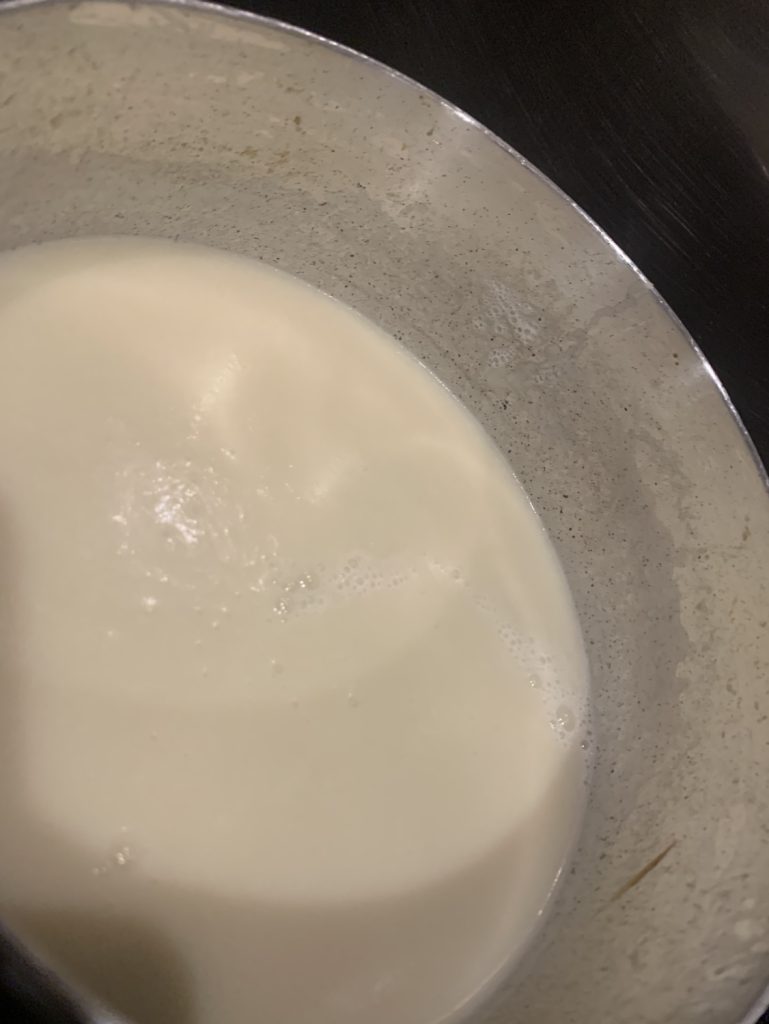 火を止めたらブレンダーまたはミキサーでなめらかになるまで攪拌し、再び鍋に戻して塩で味を調えます。